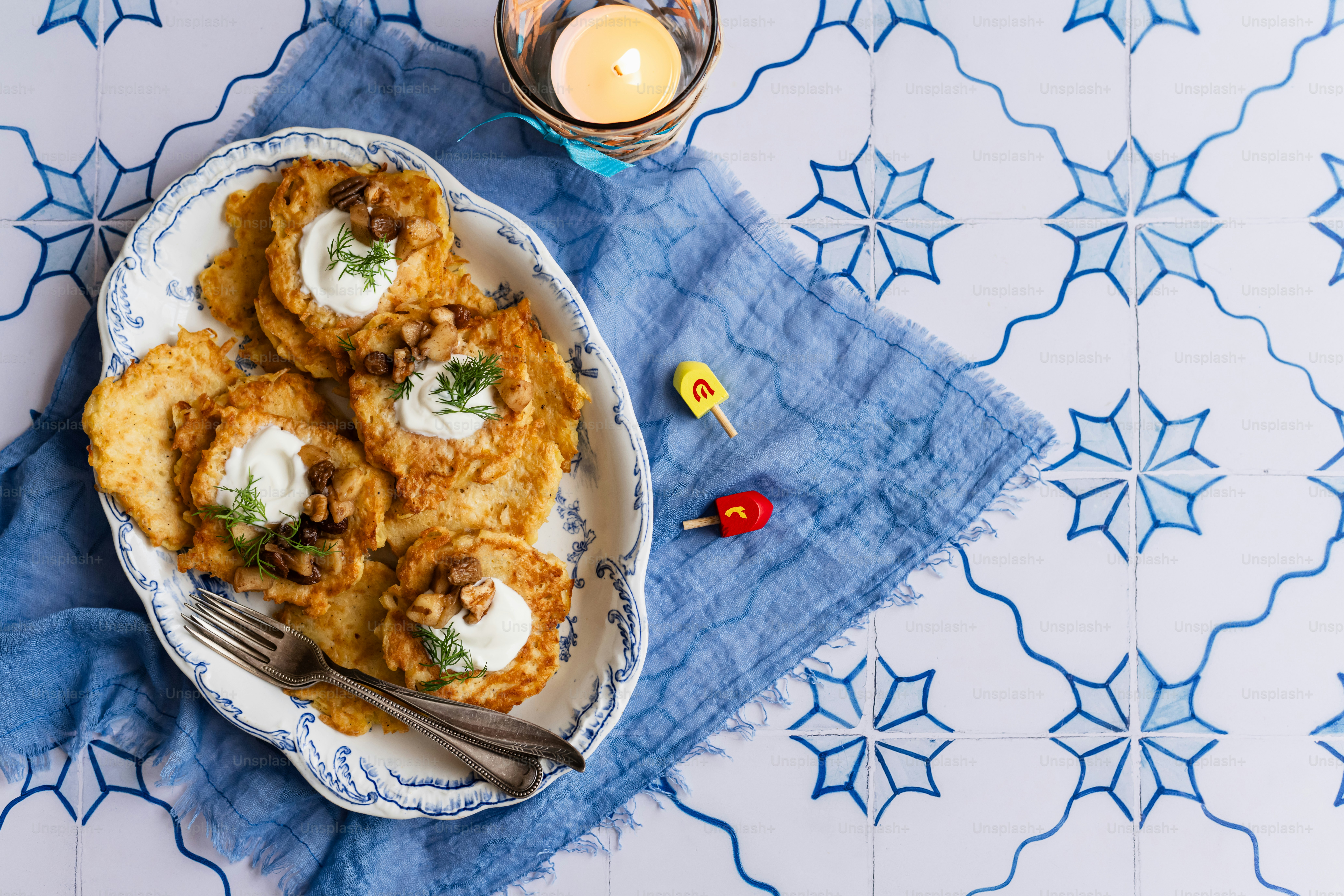Crispy potato pancakes known as Kartoffelpuffer served with applesauce.